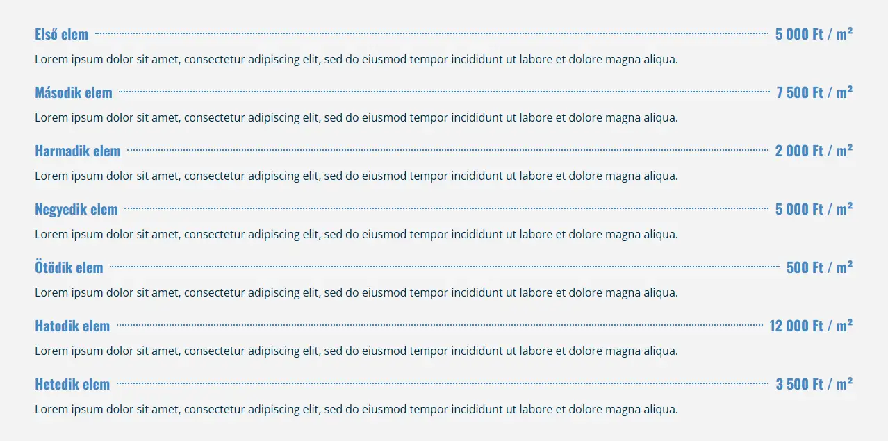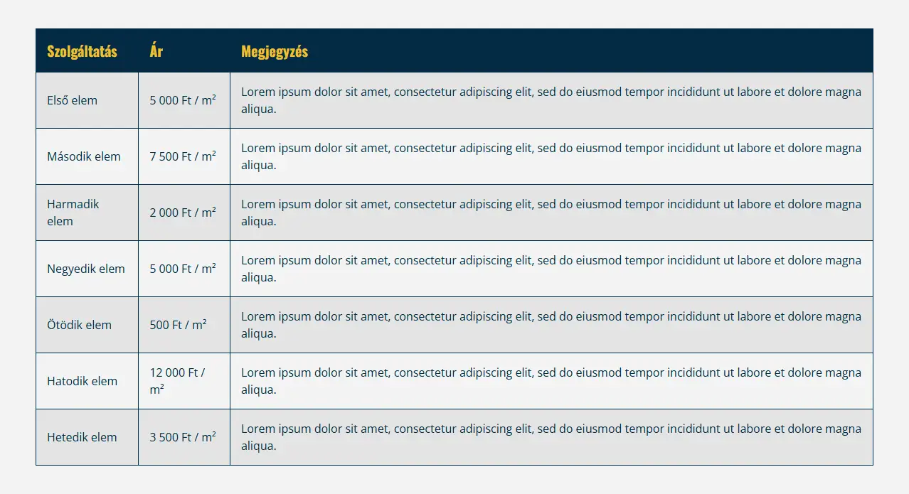 Ha szeretné az árlistáját a weboldalon feltüntetni, akkor ez egy remek és könnyen átlátható megoldás.