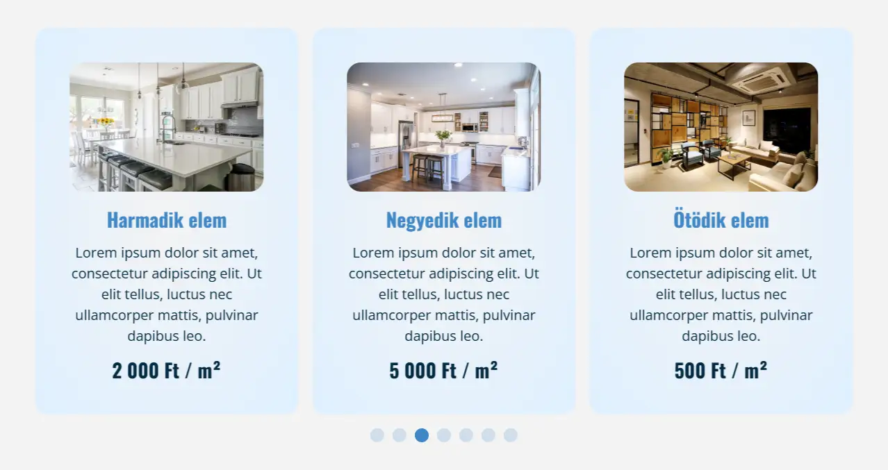 Árak bemutatása referencia fotókkal. Ha szeretné az árlistáját a weboldalon feltüntetni, akkor ez egy remek és könnyen átlátható megoldás.